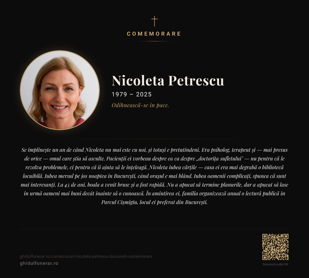 La 45 de ani, boala a venit brusc și a fost rapidă. Nu a apucat să termine planurile, dar a apucat să lase în urmă oameni mai buni decât înainte să o cunoască.